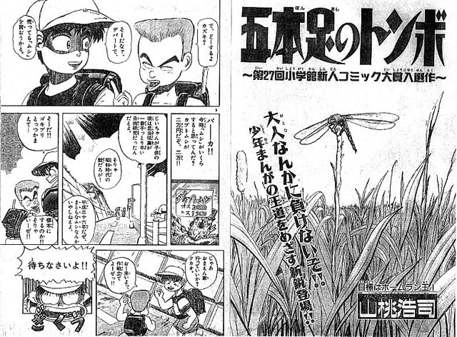 小学館新人漫画賞に読み切り「5本足の トンボ」 で入選、この道に入る。